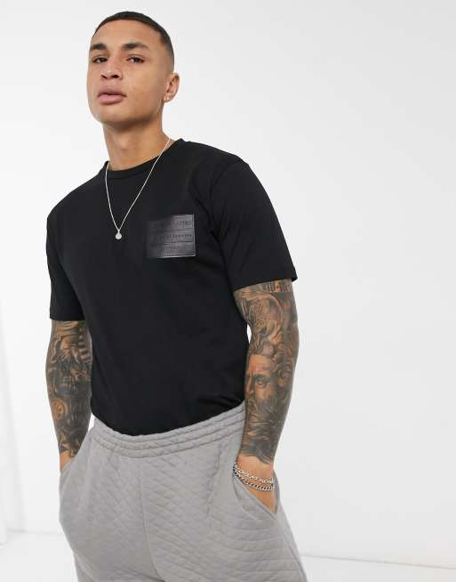 Jameson Carter Leighton Leather Patch T Shirt In Black Asos