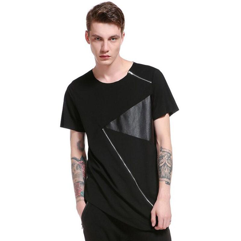 Hip Hop Men Leather Patchwork Zipper T Shirt Irregular Leather Patch Neck Zipper T Shirt Streetwear Men Clothes Under 50 From Hlq1025 Dhgate Com
