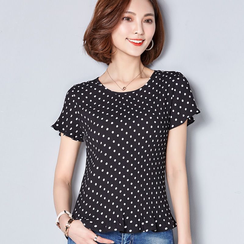 New 2017 Summer Polka Dot T Shirt Women Plus Size Short Sleeve Chiffon Blouse Slim O Neck Korean Female Shirt From Micheala Shop 7 73 Dhgate Com